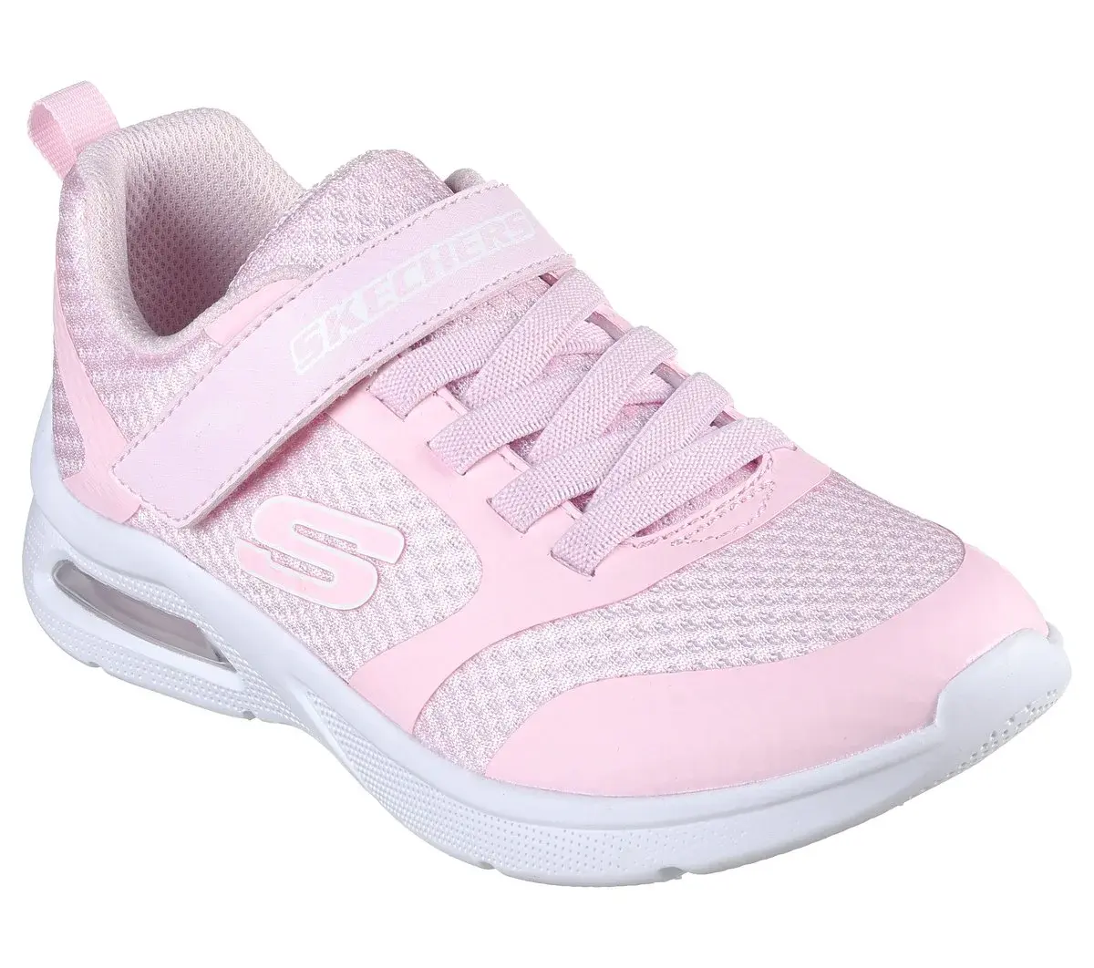 Add some extra comfy cushioning to a sporty style with Skechers Microspec Max – Racer Gal. This pull-on features a mesh upper with stretch laces, instep strap and a visible Skech-Air® airbag midsole.