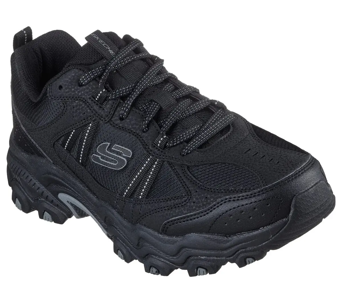 Hit the trails in athletic comfort with Skechers Stamina AT – Upper Stitch. This lace-up hiking trail design features a synthetic duraleather and mesh upper with a cushioned Skechers Memory Foam™ insole.