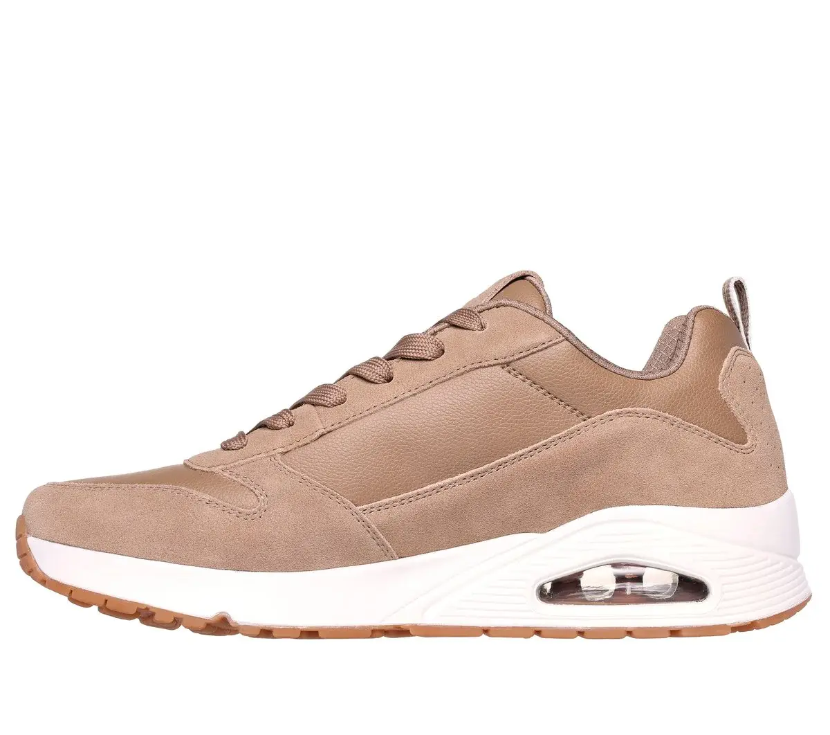 Sporty refined style meets comfort in the Skechers Street™ Uno – Stacre. This lace-up sneaker features a suede and duraleather upper with a Skechers Air-Cooled Memory Foam® insole and Skech-Air® visible airbag midsole.