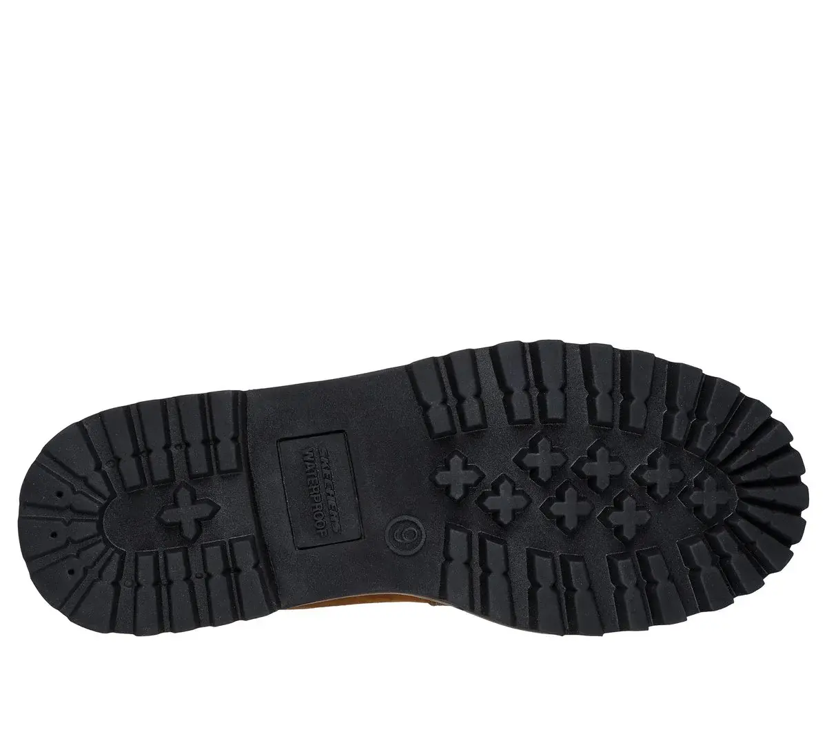 Stay supported in all-day comfort with Skechers x John Deere: Sergeants – Dozer. This Relaxed Fit® lace-up work boot features a waterproof leather upper with padded collar, and a cushioned Skechers Air-Cooled Memory Foam® insole.