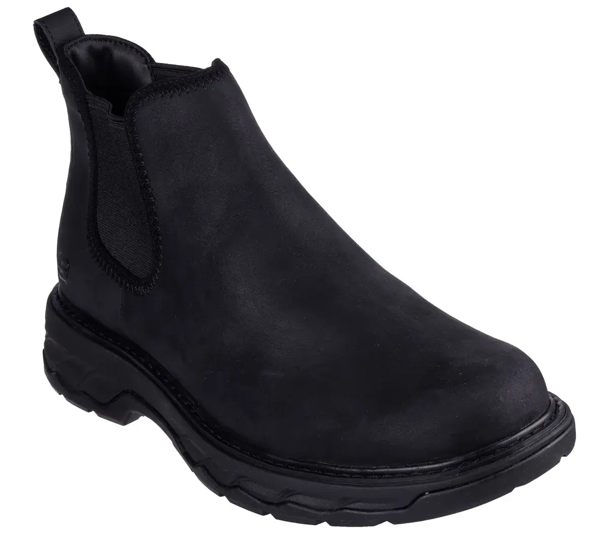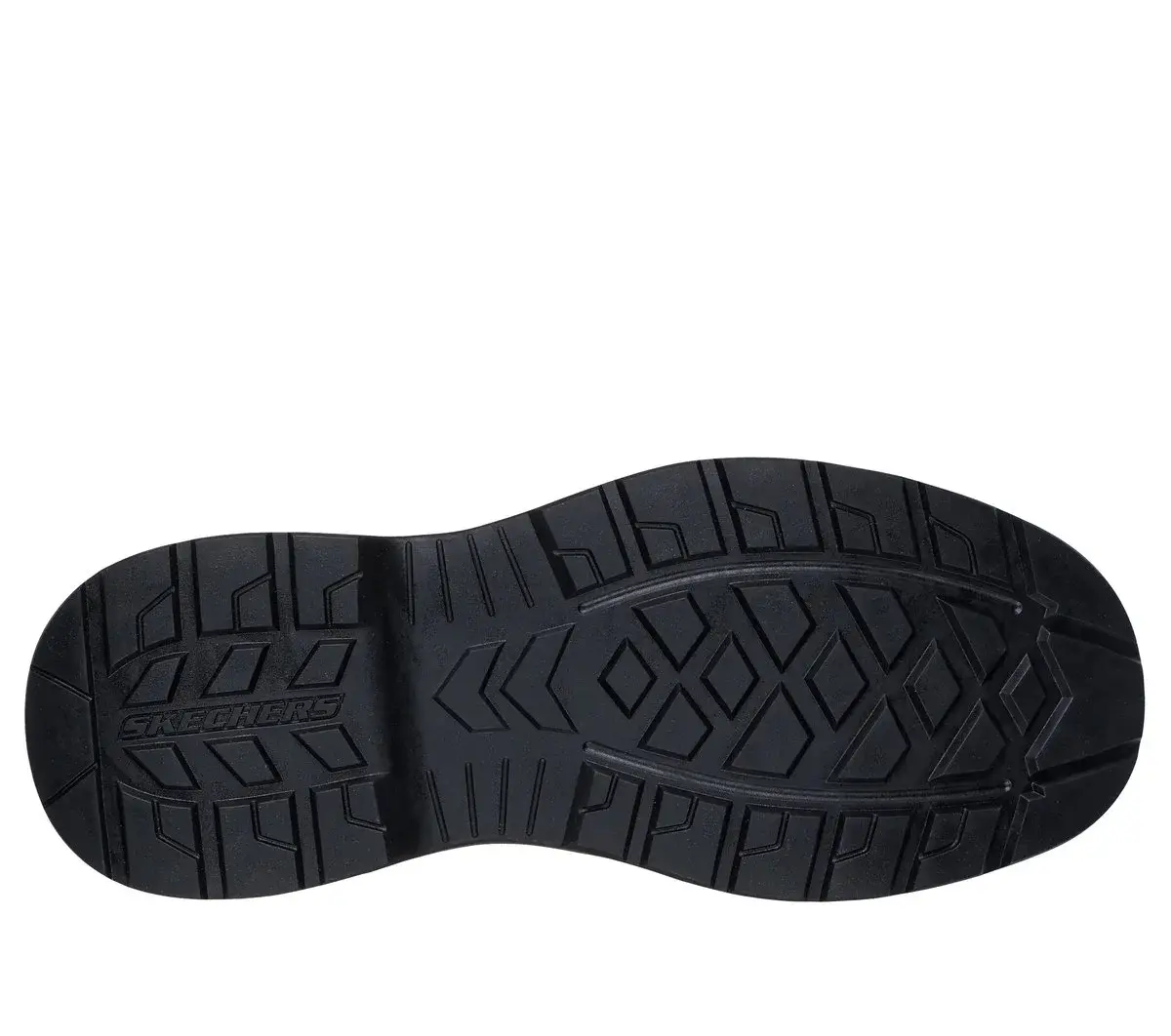 Dressy versatility and modern comfort combine stylishly in Skechers Relaxed Fit®: Lockett – Heath. This roomy Chelsea-style boot features a leather upper with twin gore panels, round toe, and a cushioned Skechers Air-Cooled Memory Foam® insole.