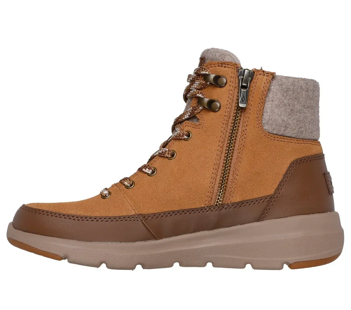 Chilly weather style meets sporty comfort in Skechers On-the-GO® Glacial Ultra – Tahoe. This lace-up sneaker boot features a 3M® Scotchgard® treated suede upper with a side-zip closure, faux-wool collar and trim, Skechers Air-Cooled Goga Mat™ insole, and lightweight ULTRA GO® cushioning.