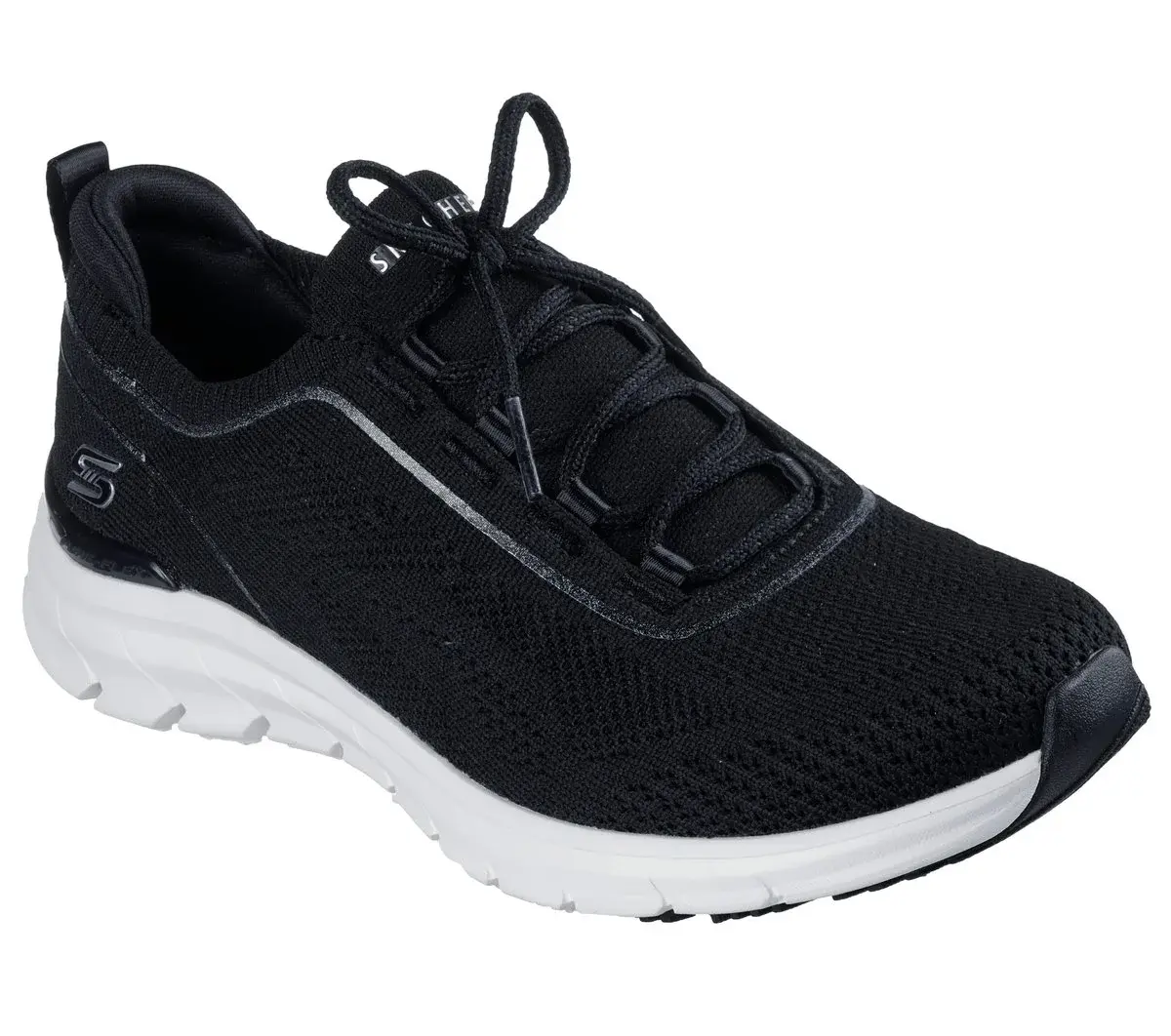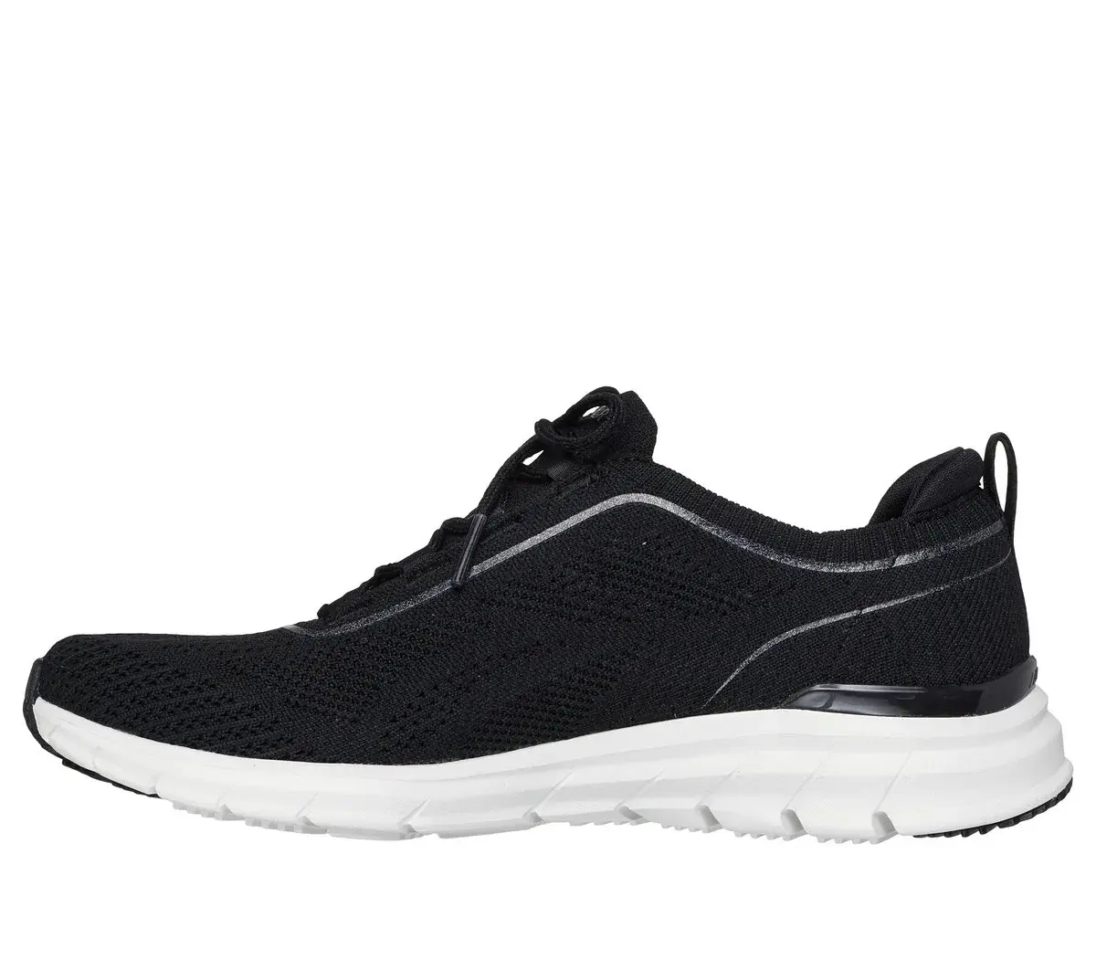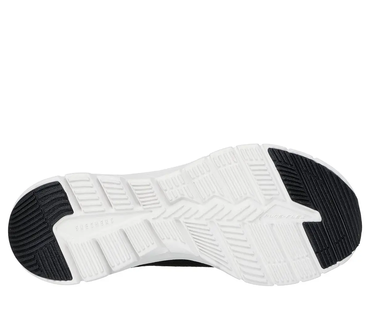 Get right to the sporty style and comfort wearing Skechers Pure Flex – Midnight Star. This casual vegan style features a Stretch Fit® engineered knit upper with fixed decorative laces and a cushioned Skechers Air-Cooled Memory Foam® insole.