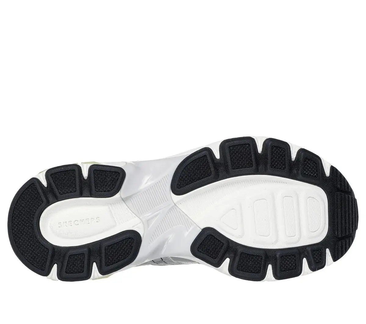 Show off your sporty diva style wearing Skechers Street™ Skechers Shadow – Stellar 90. This lace-up fashion sneaker features a metallic duraleather and mesh upper with a translucent midsole insert and cushioned Skechers Air-Cooled Memory Foam® insole.