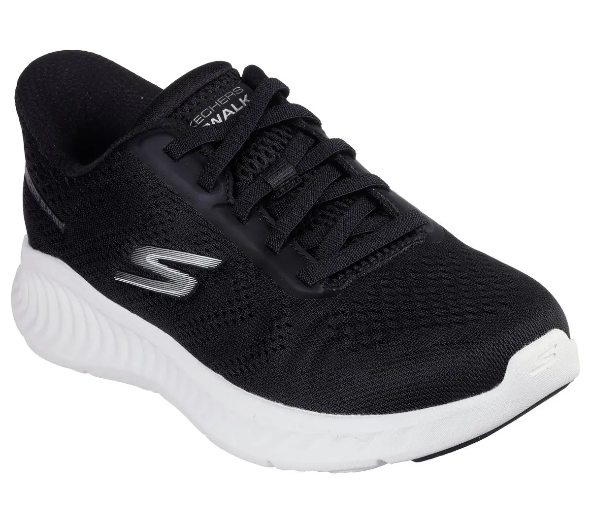 Step-in to convenient walking comfort and cushioning wearing Skechers Hands Free Slip-ins® GO WALK® Now – Khloe. Designed with our exclusive Heel Pillow™, this sporty style features an engineered mesh upper with stretch laces, Skechers Air-Cooled Goga Mat™ insole, and ULTRA LIGHT cushioning.