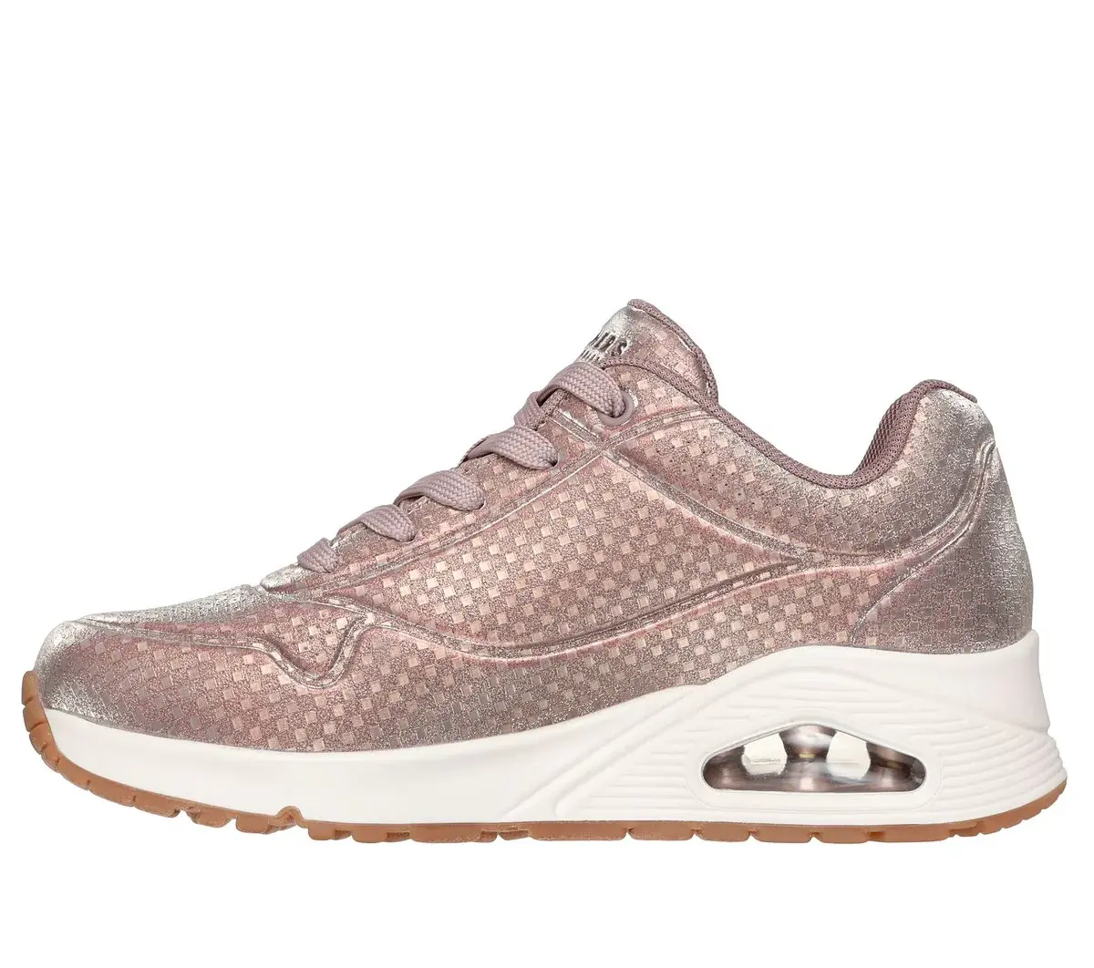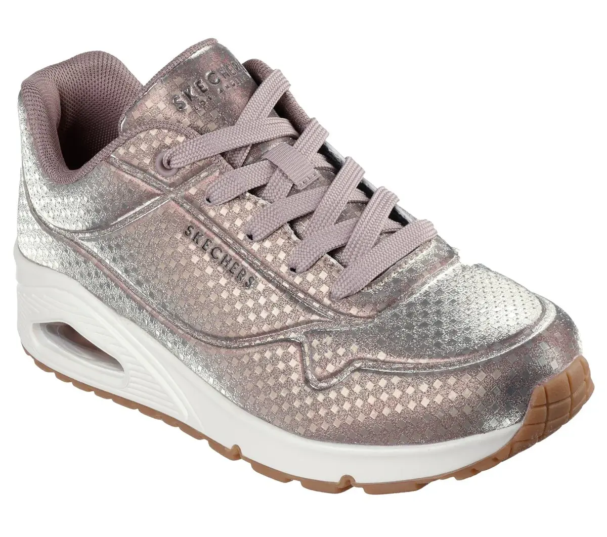 Step into the groove with Skechers Street™ Uno – Disco Nite. This fashion sneaker features a lace-up synthetic disco glitter upper, Skechers Air-Cooled Memory Foam® insole, and a visible Skech-Air® airbag midsole.