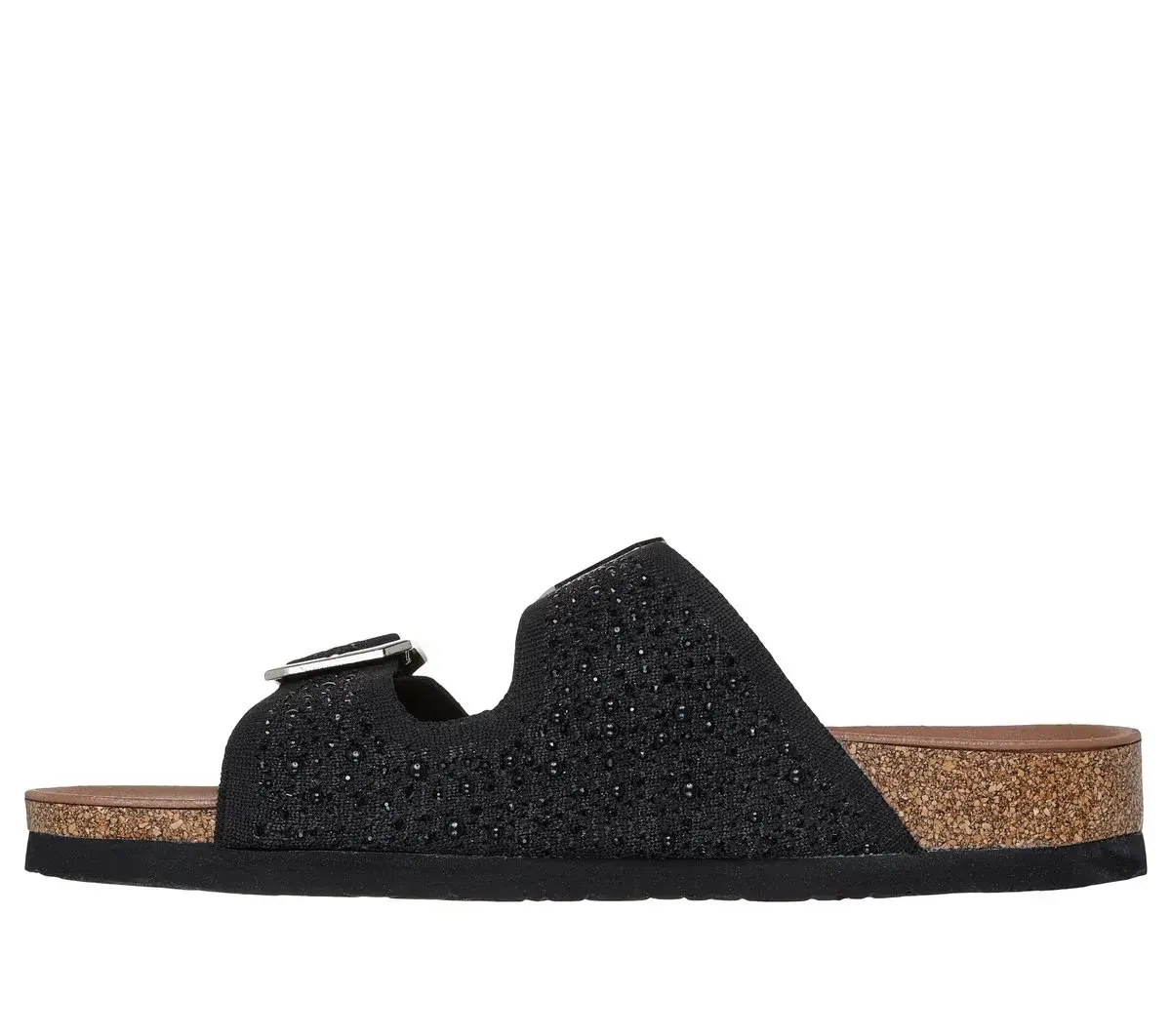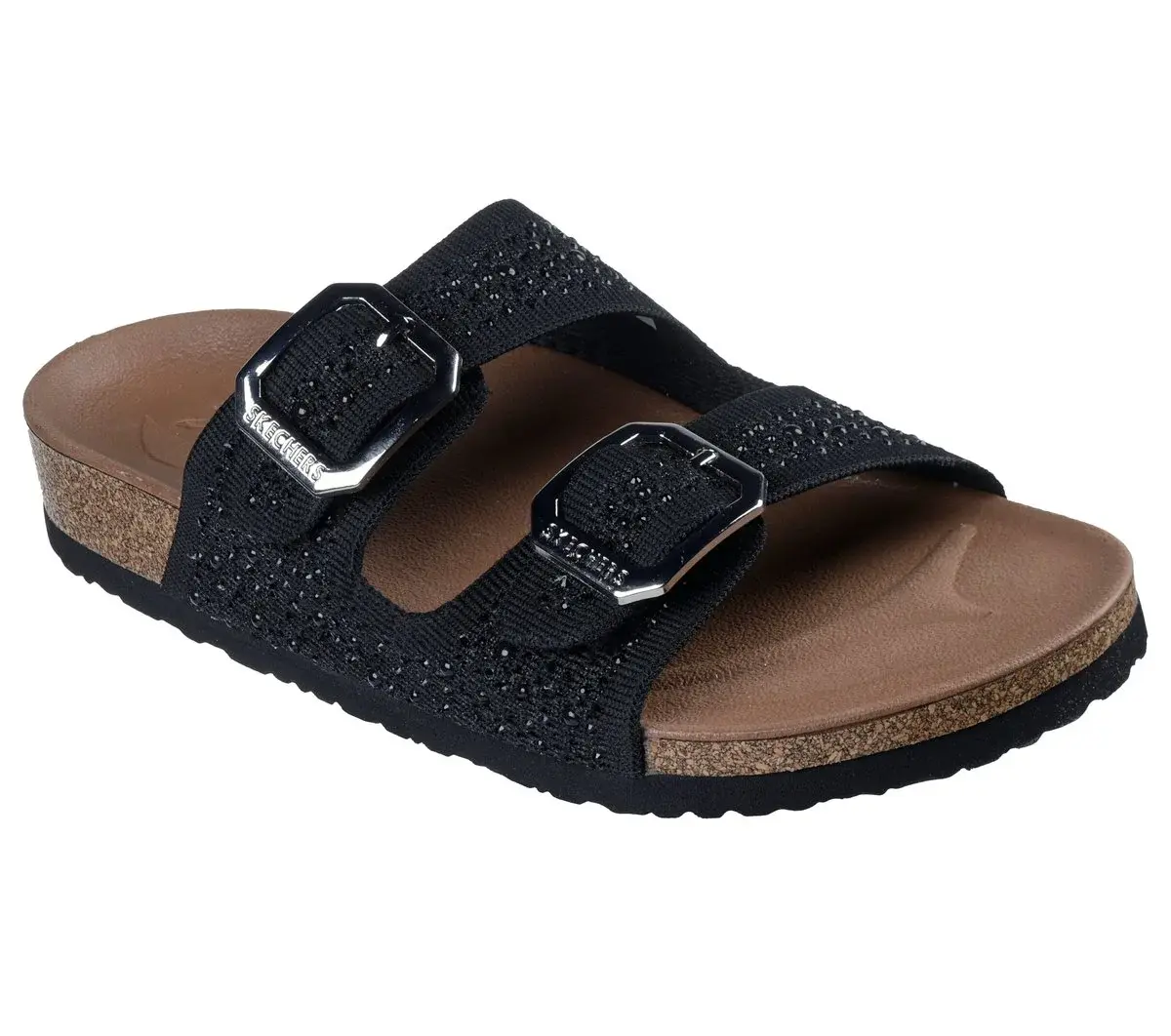 Dazzle your way through the day in laid-back comfort wearing Skechers Arch Fit® Granola – Casually Stunning. This vegan double band slide sandal has been granted the APMA Seal of Acceptance and features a rhinestone knit upper and a supportive Arch Fit® footbed with Luxe Foam® cushioning.