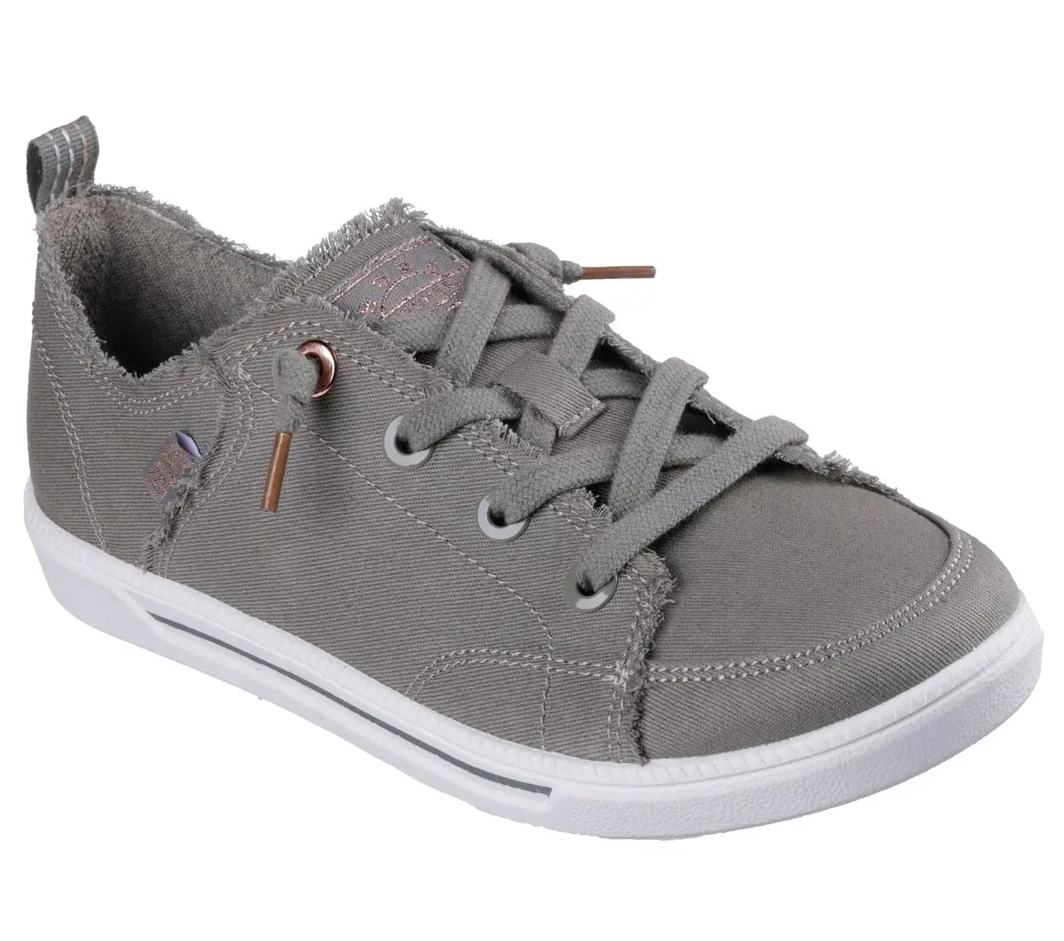 Easy-wearing classic style and comfort combine in BOBS® from Skechers® B Cute 2.0. This casual vegan design features a cotton canvas upper with frayed edge details, tied-off decorative laces, and a cushioned Skechers Memory Foam™ insole. BOBS® from Skechers® is committed to saving the lives of pets in need.