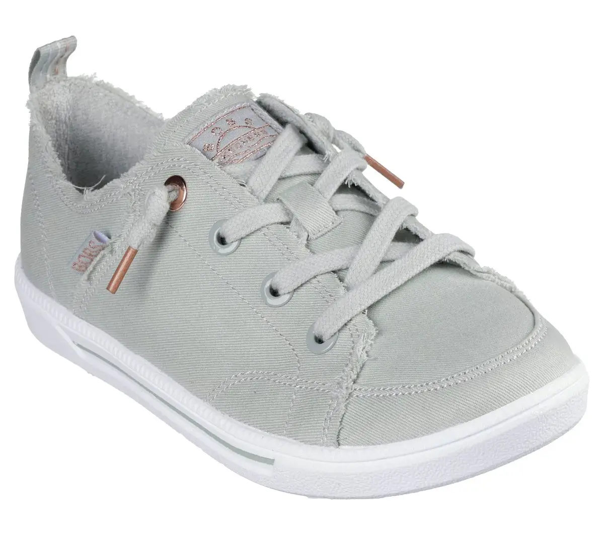 Easy-wearing classic style and comfort combine in BOBS® from Skechers® B Cute 2.0. This casual vegan design features a cotton canvas upper with frayed edge details, tied-off decorative laces, and a cushioned Skechers Memory Foam™ insole. BOBS® from Skechers® is committed to saving the lives of pets in need.