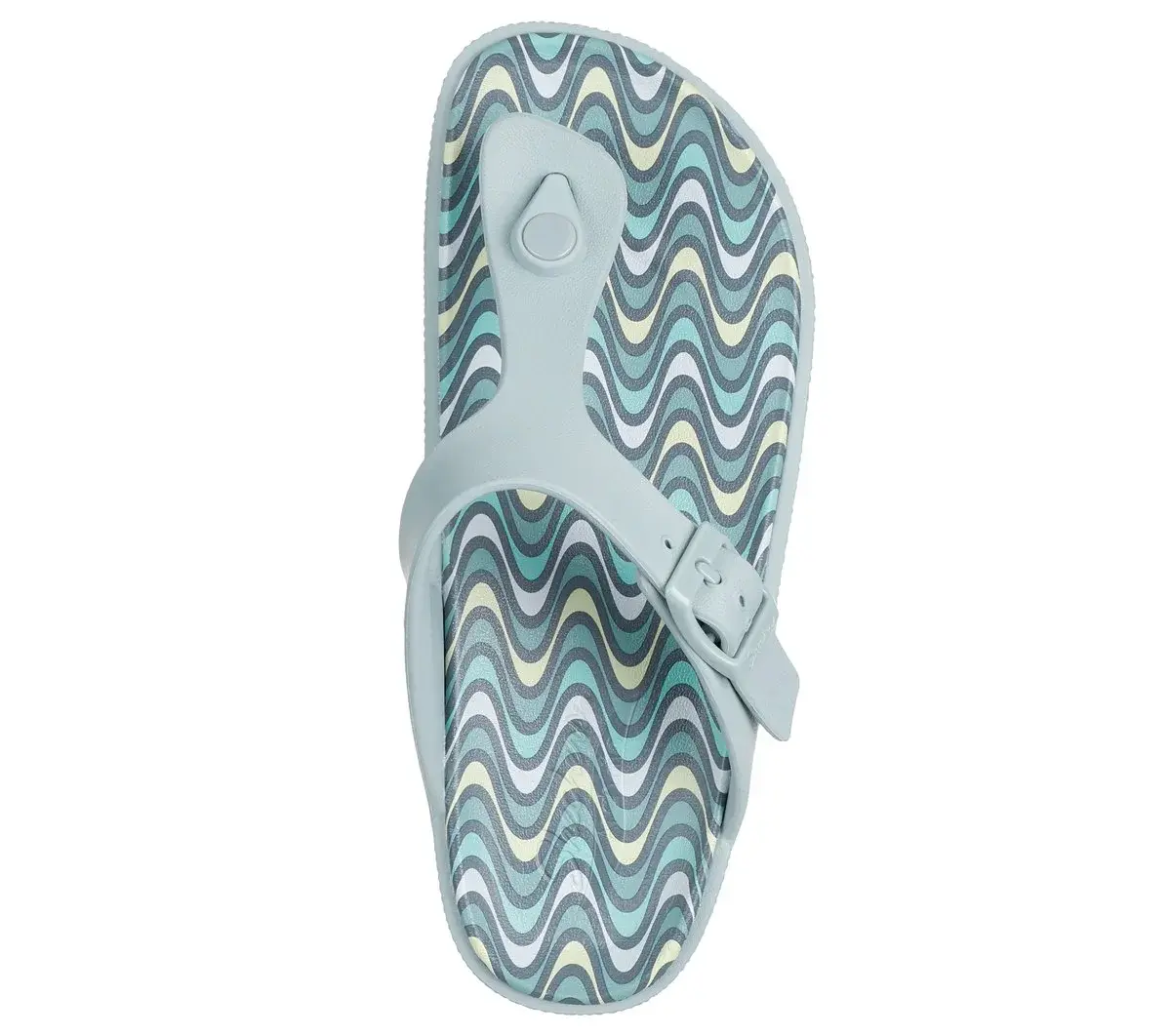 Summery style combines with long-lasting comfort in Skechers Foamies®: Arch Fit® Cali Breeze 2.0 – Golden. This casual three-point thong sandal has been granted the APMA Seal of Acceptance and features a sculpted lightweight EVA upper with buckle detail and a printed Arch Fit® footbed.