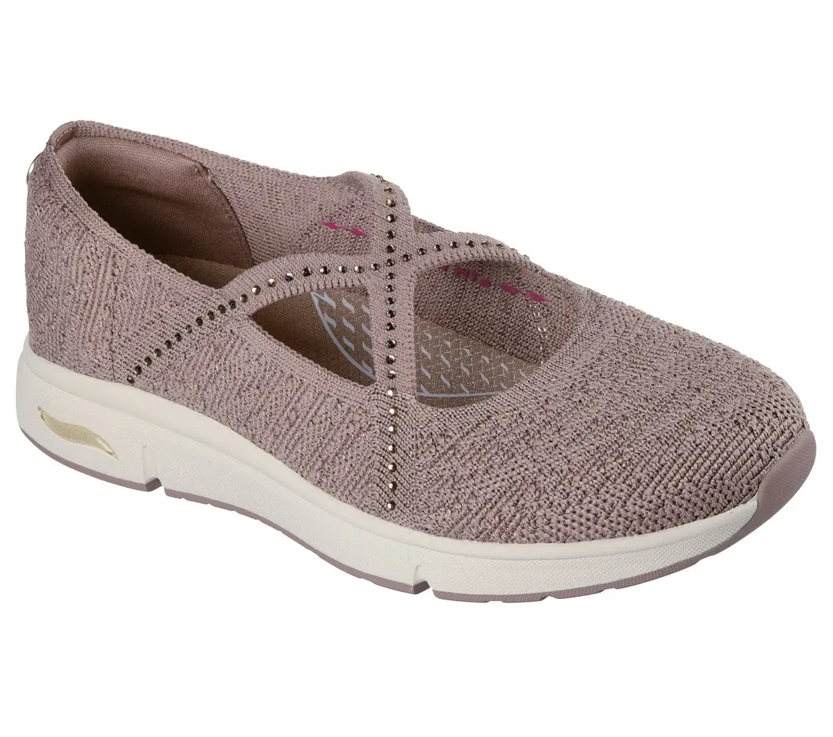 Celebrated lifestyle expert, Martha Stewart, delivers her one-of-a-kind touch to Skechers in this spirited collaboration. Lounge about in laid-back comfort wearing Martha Stewart x Skechers Arch Fit® Living – Meadow Walks. This Stretch Fit® Mary Jane style features a recycled knit upper with rhinestone embellishments and a removable Arch Fit® insole.