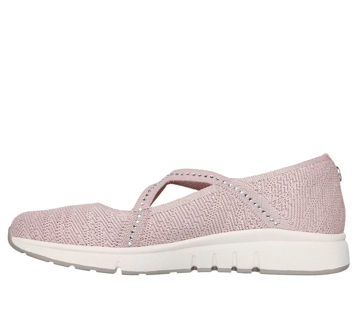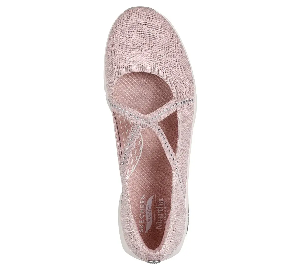 Celebrated lifestyle expert, Martha Stewart, delivers her one-of-a-kind touch to Skechers in this spirited collaboration. Lounge about in laid-back comfort wearing Martha Stewart x Skechers Arch Fit® Living – Meadow Walks. This Stretch Fit® Mary Jane style features a recycled knit upper with rhinestone embellishments and a removable Arch Fit® insole.
