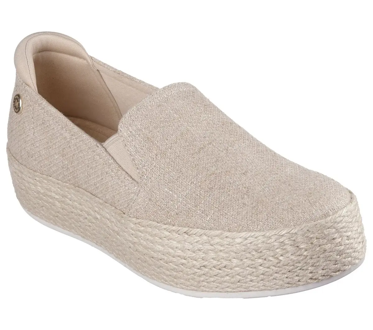 Celebrated lifestyle expert, Martha Stewart, delivers her one-of-a-kind touch to Skechers in this spirited collaboration. Shine on in fashionable flair wearing Martha Stewart x Skechers: BOBS Sesame – By The Bay. This easy-wearing casual design features a brushed canvas upper with twin gore panels, a cushioned Skechers Air-Cooled Memory Foam® insole, and a jute-trimmed espadrille flatform midsole. This style runs large. Order a half size down from your usual size. BOBS® from Skechers® is committed to saving the lives of pets in need.