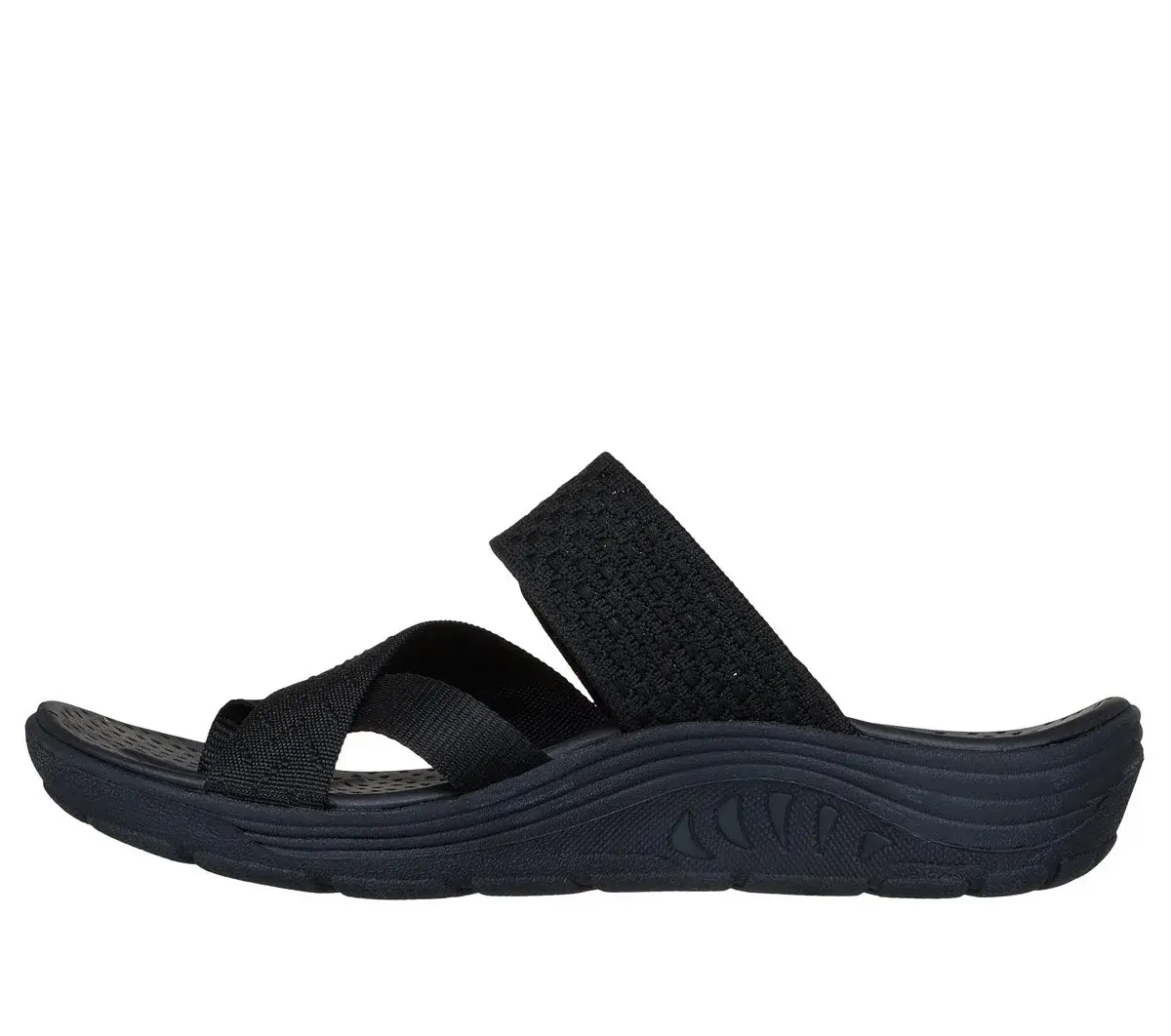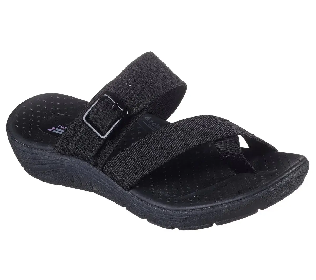 Comfort and breezy style makes a loving pair with Skechers Reggae Cup – Coffee Date. This vegan slide sandal features an adjustable knit upper with a toe loop, an Arch Comfort® cushioned footbed, and a shock-absorbing midsole for added support.