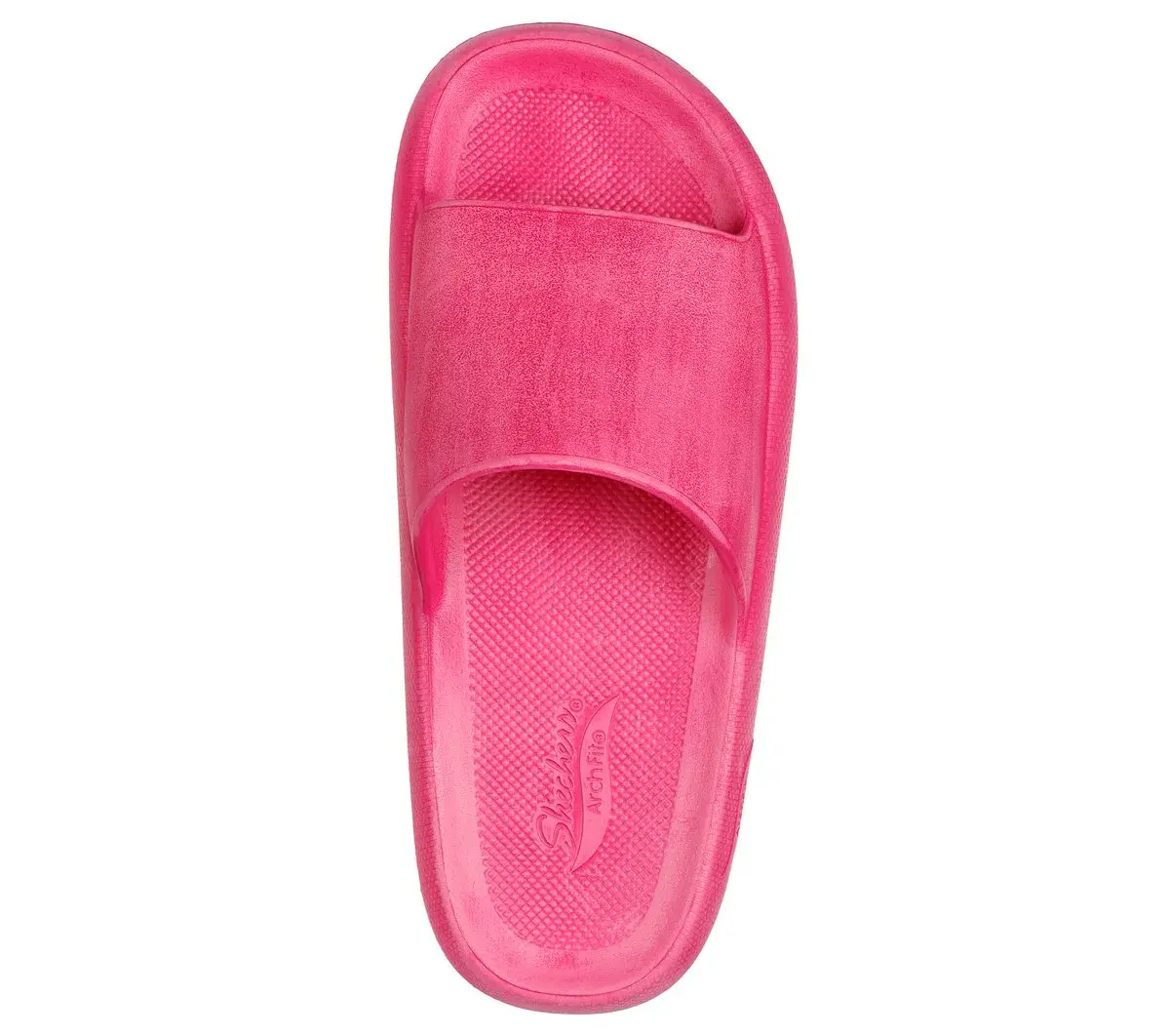 Slide into supportive comfort and on trend sculpted style wearing Skechers Foamies®: Arch Fit® Horizon – Make-Believe. This vegan slide features a distressed Foamies® EVA single band upper and an Arch Fit® contoured footbed.