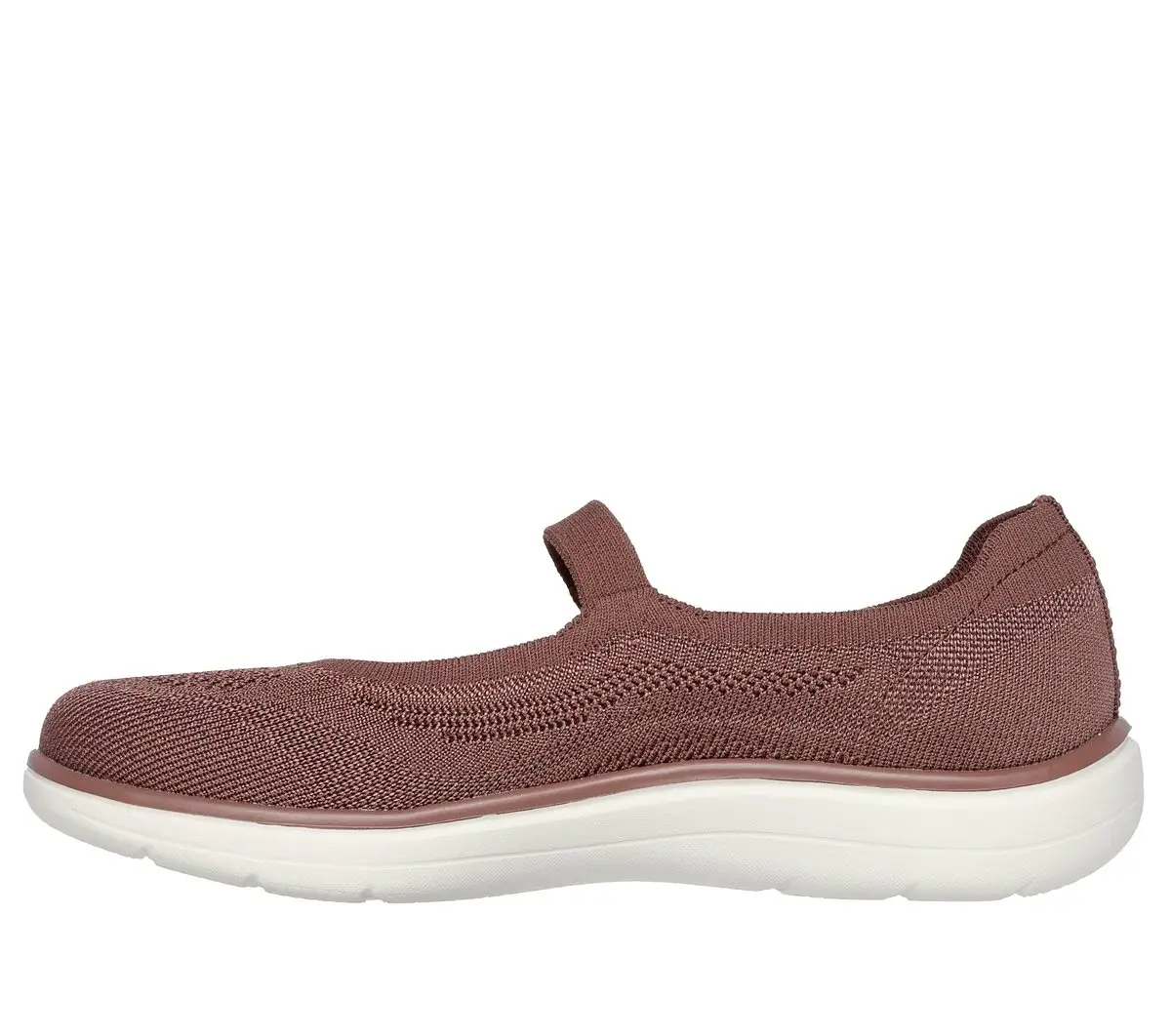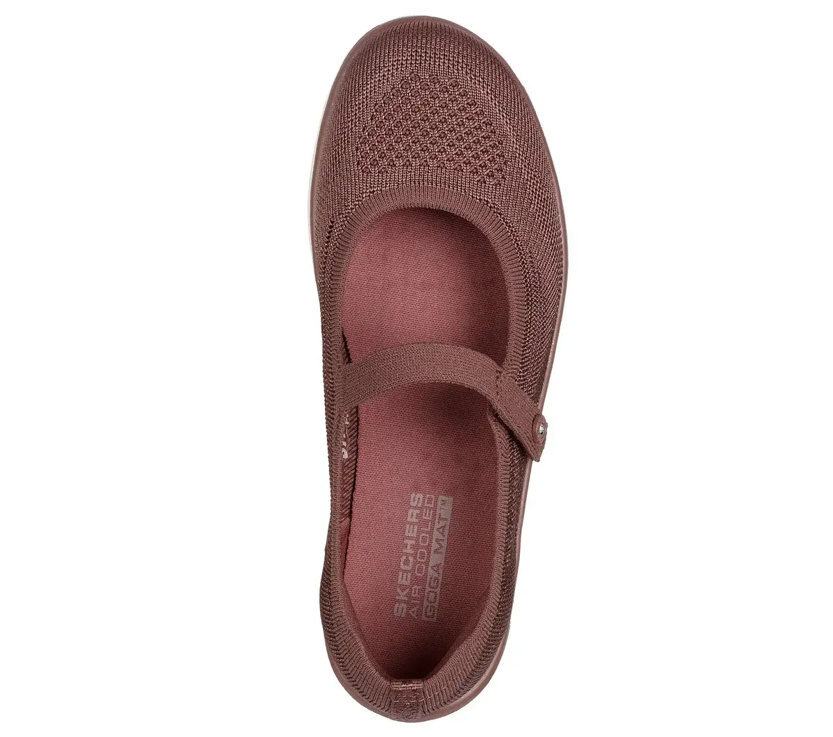 Stylish and versatile comfort combine in Skechers On-the-GO® Flex Radiant – Sweet Pea. This Mary Jane style features a Stretch Fit® engineered knit upper with rivet strap, high-rebound Skechers Air-Cooled Goga Mat™ insole, and lightweight ULTRA GO® cushioning.