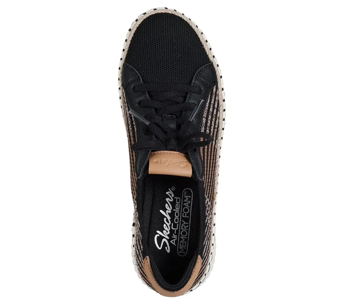 Take a walk on the stylish side in easy-wearing comfort with Skechers Wilshire Blvd – Breezy Stroll. This vegan Skechers No Tie Fit® design features a knit and synthetic leather upper with faux laces, jute trim along the midsole, a Comfort Pillow at the heel, and a cushioned Skechers Air-Cooled Memory Foam® insole.